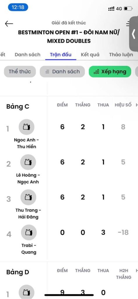 That meant if Le Hoang – Ngoc Anh won, the two teams advancing would be Le Hoang – Ngoc Anh and Thu Trang – Hai Dang.